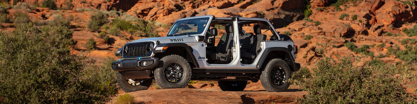Disclaimer: *Stk# 12RW147316, MSRP $59,825. Price excludes tax, title, and MV fees. Price includes all manufacturer incentives, if any. Lease includes 7,500 mi/year at $0.25/mi. overage. Lessee responsible for maintenance and excess wear/tear. Total payments/residual: $7,176/$42,475.75. All credit subject to approval by primary lender. **Example: New 2023 Jeep Wrangler Sahara 4xe, Stk# 12PW580056.